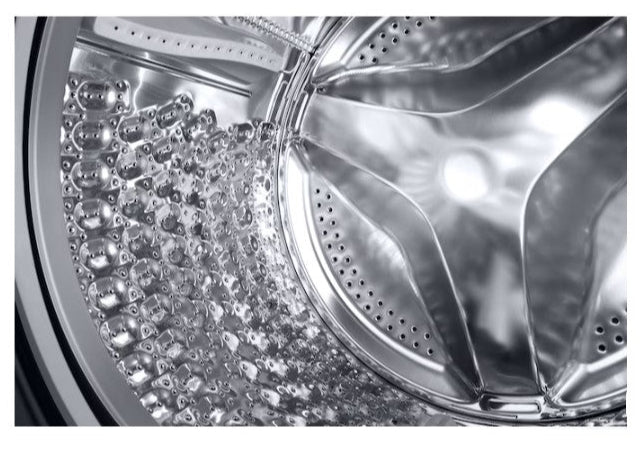 Keep the door and inside of your washer hygienically clean. Drum Clean + removes dirt and 99.9% of odor-causing bacteria* from the drum, without costly detergent. A powerful water jet and fast spinning also remove grime from around the door gasket. And it notifies you when it needs cleaning**.