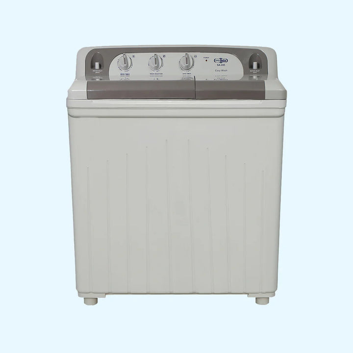Super Asia Easy Wash SA-245 Washing Machine Online in Pakistan, Shock & Rust Proof Plastic Body with Double Strom Pulsator, Heavy Gear Technology, Power Full Copper Motor, Quick Spinning, Automatic Water Balancing Ring, and Energy Saving.